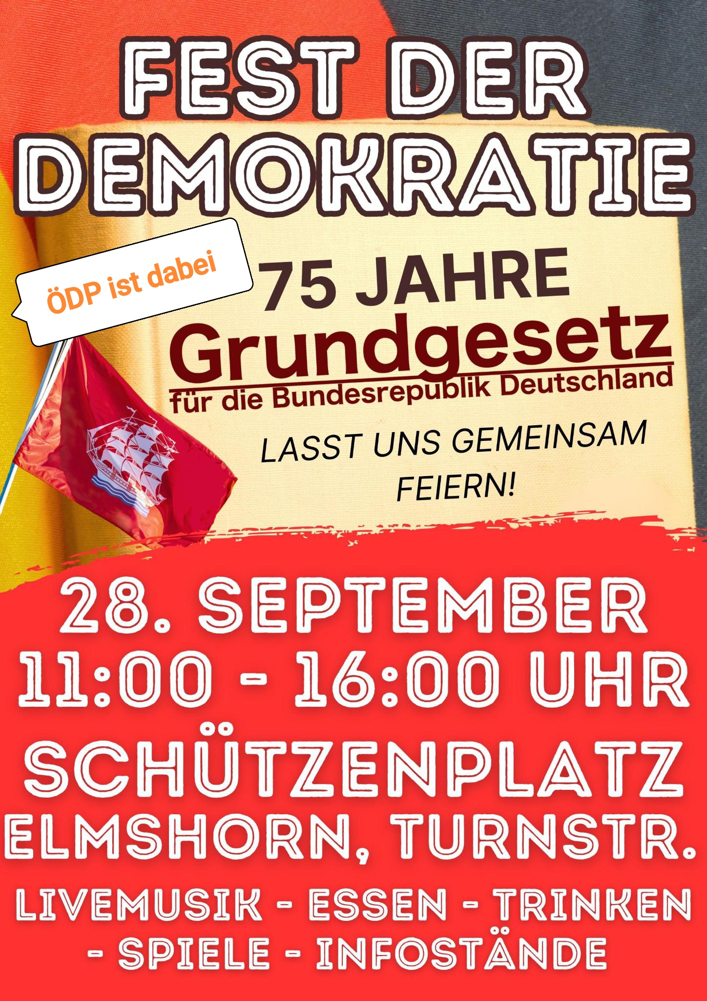 Kommt zum Schutzenplatz, Turmstraße 5 , 25335 Elmshorn und feiert mit uns 75 Jahre Grundgesetz